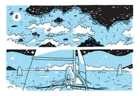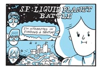 S.F.: Liquid Planet Battle is an “expanded collection” (meaning I added stuff to it) of the first three installments of my webcomic for the online magazine Hazlitt. It’s about a planet in the future that must choose between piracy and science.